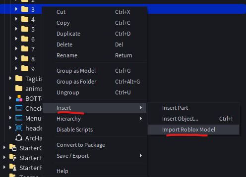 Select the .rbxm file you created earlier, and it'll be imported to the folder.