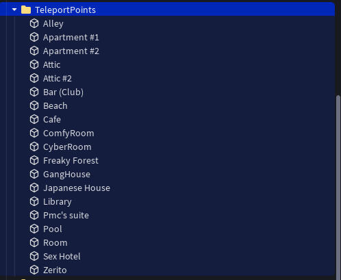 For the Teleport Point, you'll find it at Workspace -> TeleportPoints.