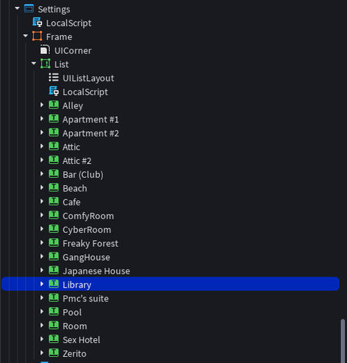 Now you'll only be missing the Teleport Button. The button is located at: StarterGui -> Settings -> Frame -> List.