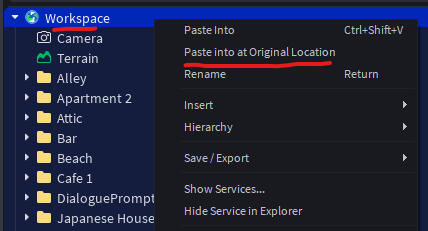 Now that your map is on your clipboard, you'll head to the file in which you want to add the map. Right-click the Workspace and Paste Into at Original Location.